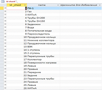 базы данных котельного отделения КТЦ Вологодской ТЭЦ.