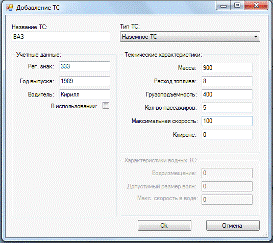 Рисунок 2. Добавление ТС (после нажатия на