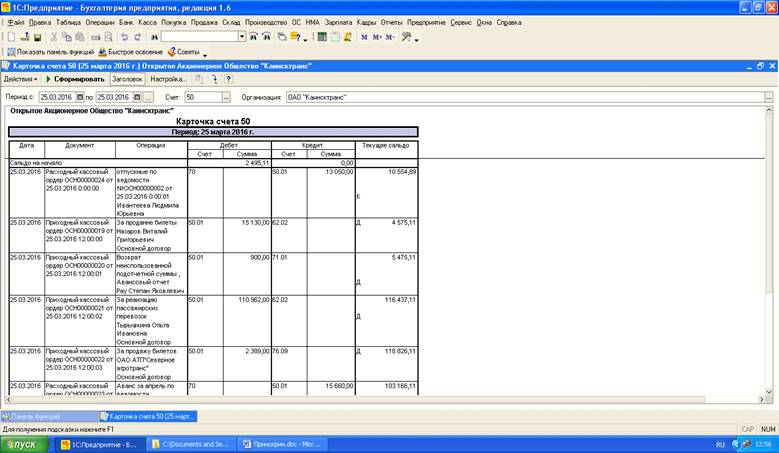 бухгалтерского учета денежных средств в ОАО «Каинсктранс».