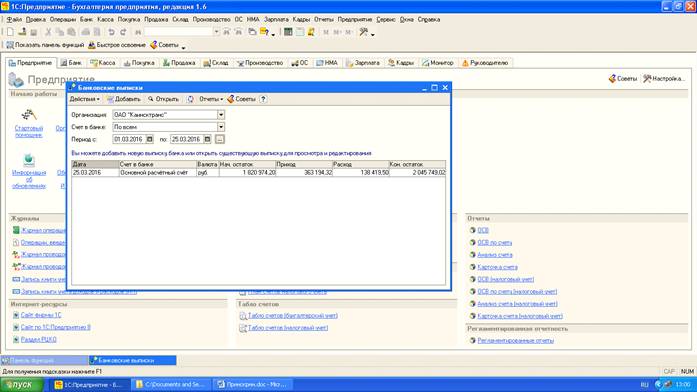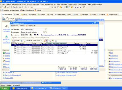 банковских и кассовых первичных документов с последующей автоматической