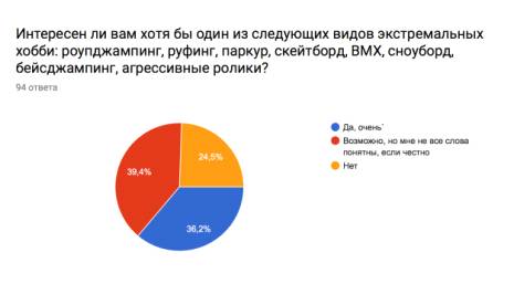 городских экстремальных хобби. Среди этой группы опрошенных только 20% не имеют