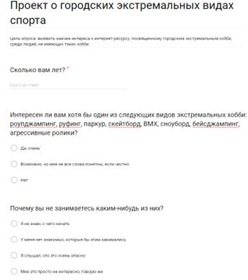 интернет-портала о городских экстремальных видах спорта с точки зрения