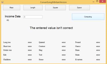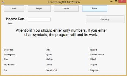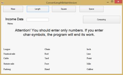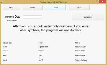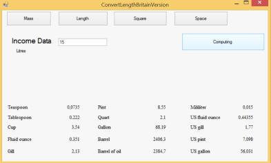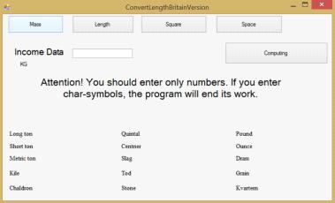 работы является создание конвертера величин (массы, длины, площади, объема),