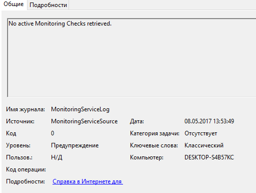 Рис. 19 «Предупреждение об отсутствии активных проверок в журнале»