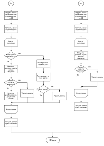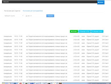 отображения списка учебных занятий по учебным группам, по преподавателям, на