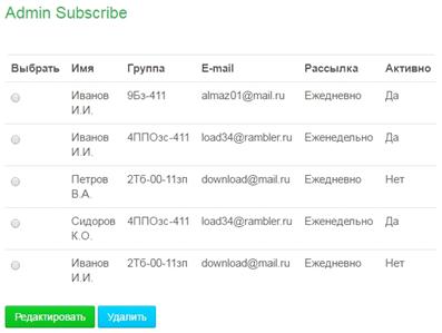 расписание занятий в форме сообщения электронной почты или SMS сообщения;