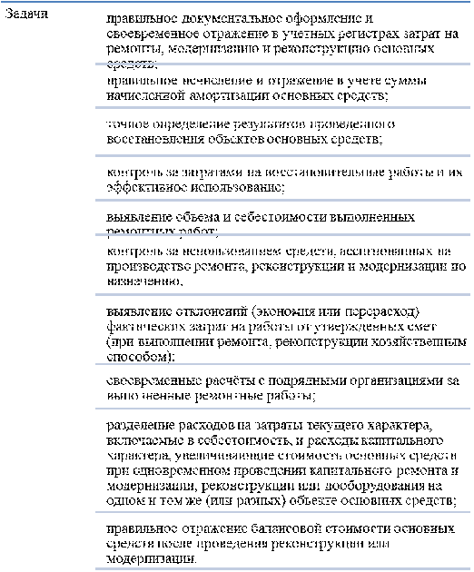 Рисунок 1.3 - Задачи учета затрат на восстановление основных средств