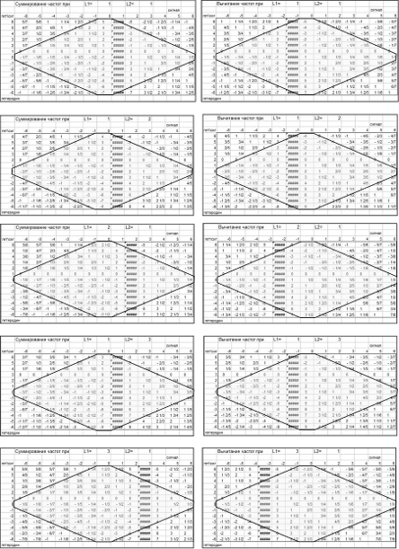 комбинационных частот («+» или» -»)