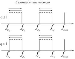 (суммирование (верх) / вычитание (низ) частот):
