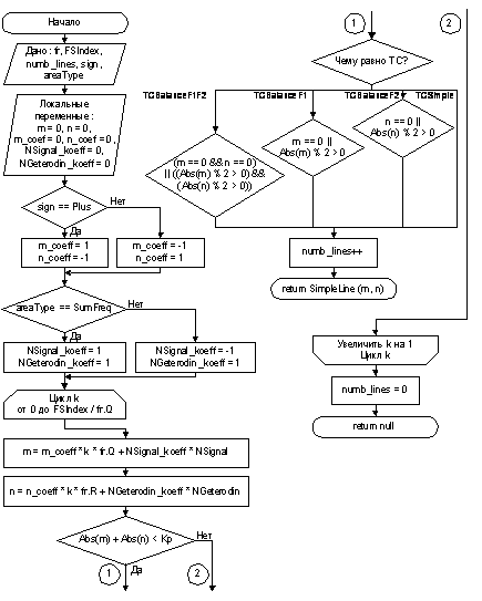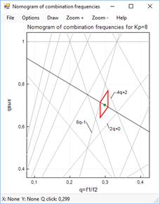 // Находим комбинационные частоты, проходящие через данную