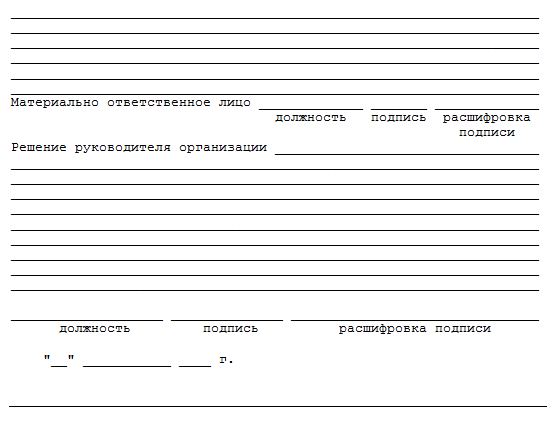 (контрольная проверка, смена материально ответственных лиц и т.д.).