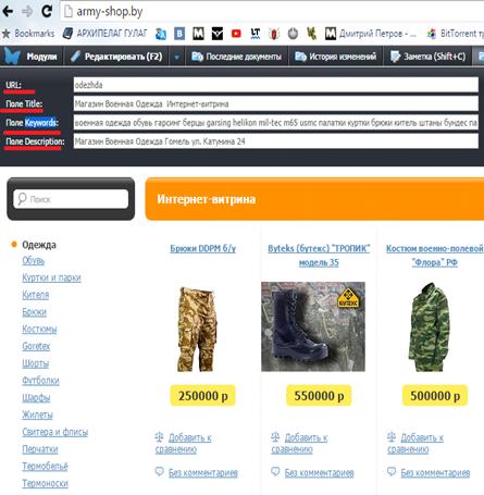 обусловлена отсутствием у магазина «Военная одежда» ИП Бычковского Я.В. своего Web-сайта,