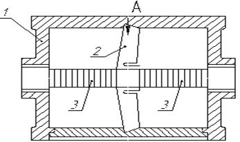расточной инструмент со встроенным демпфером: 1 - инерционное тело; 2 - корпус;