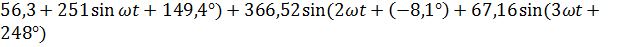 кривую несинусоидального напряжения источника ЭДС до трех гармонических