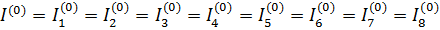 Определяются значения магнитных потоков на k=1итерационном шаге в соответствии с законом Ома для