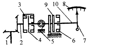 зацепление с шестерней 10, на оси которой закреплена стрелка 8, движущаяся