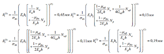 МПа , t12 = 8 МПа и углы укладки 0o , ± 45o и 90o . С помощью (14) находим толщины
