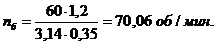 на ведомом валу:=n1/u2;=350 / 5 = 70