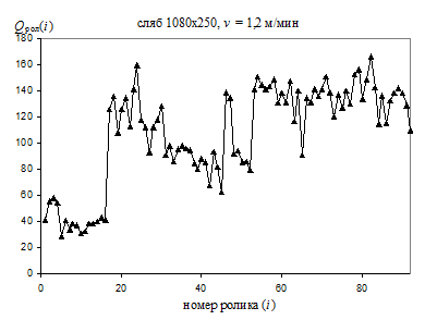 роликах МНЛЗ отводится примерно 20% теплоты жидкой стали, т.е. в среднем в