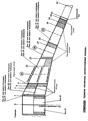 размаху крыла между передним и задним лонжеронами. Все баки образуют четыре
