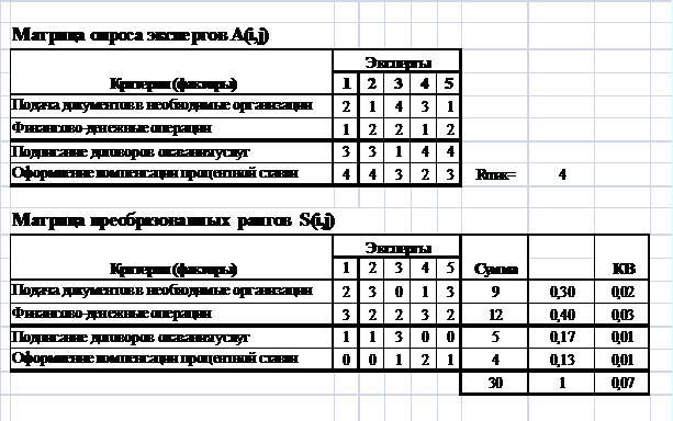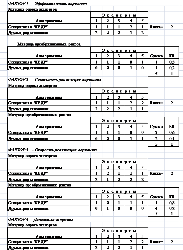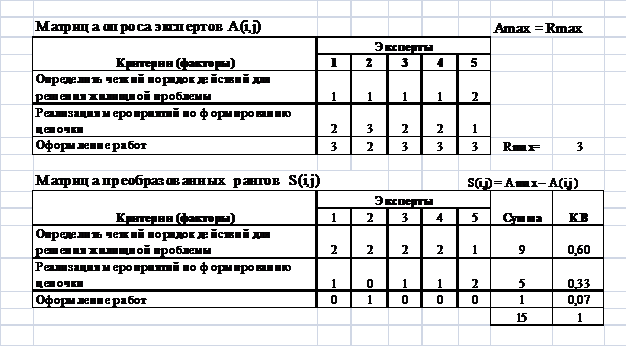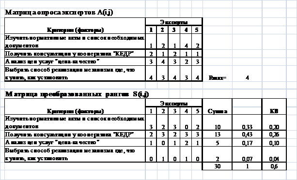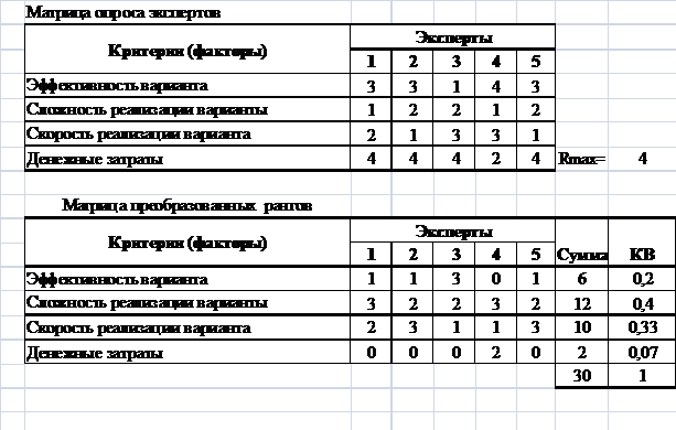 .2 Расчет коэффициентов относительной важности (КОВ)