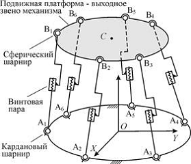 Стюарта (рис. 1). Механизм образован 6-ю одинаковыми кинематическими цепями,