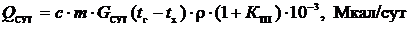 .2 Расчет тепловых нагрузок на вентиляцию по удельной