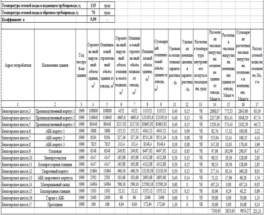 расчета тепловой сети ОАО «ТРАНС-АЛЬФА ЭЛЕКТРО»
