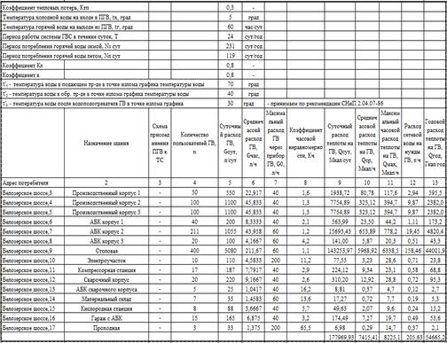 Определение расчетных тепловых нагрузок на горячее водоснабжение ОАО