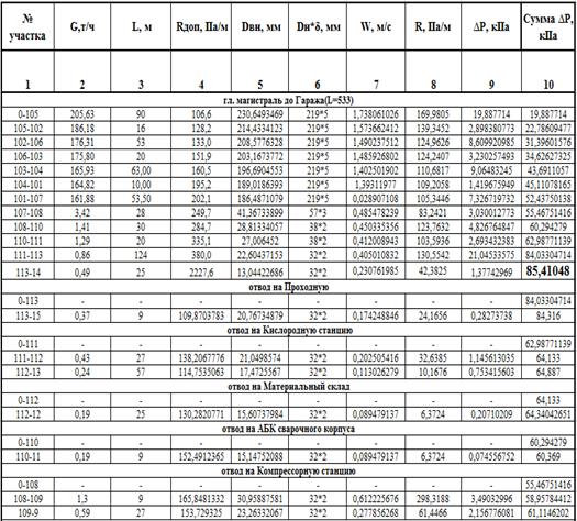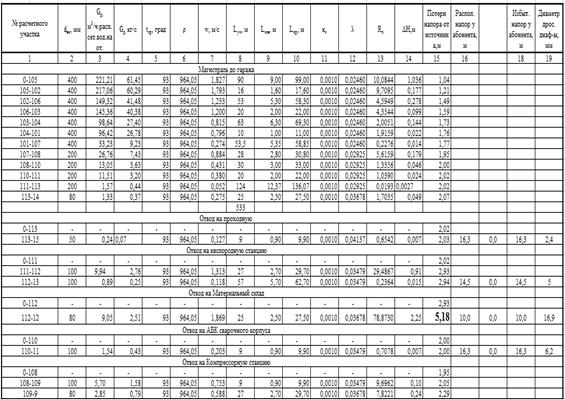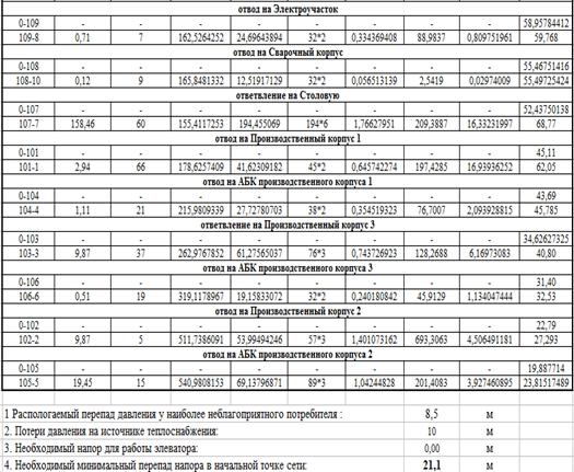Результаты гидравлического расчета на отопление тепловой сети ОАО