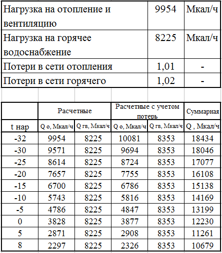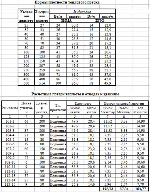 Расчетные тепловые потери в сетях отопления и горячего водоснабжения