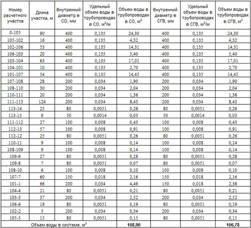Объем воды в трубопроводах в тепловой сети