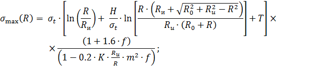 Радиальные напряжения pmax определяются следующим