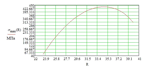 строим график зависимости max в функции от R.