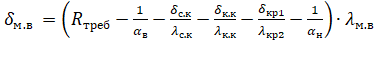 состава на примере расчета толщины утеплителя для плоской многослойной стенки
