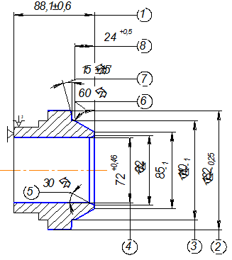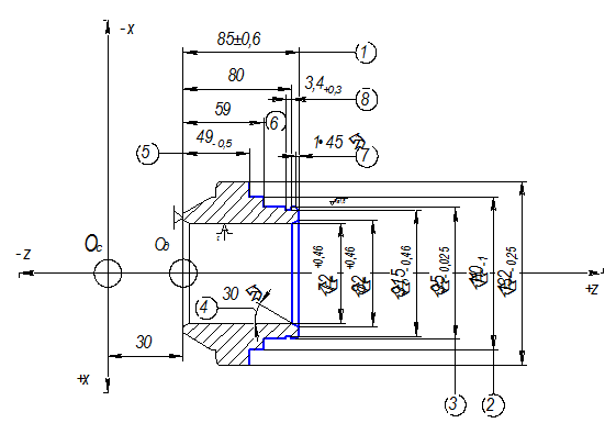Торцевая поверхность точки 1,2,3 заготовки