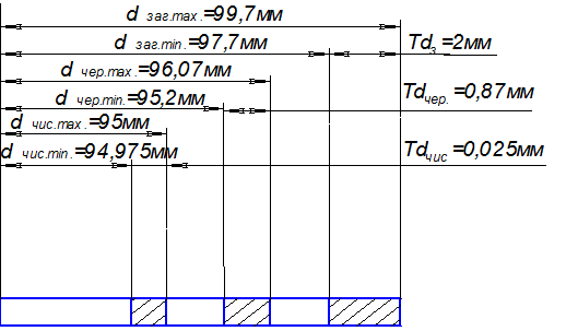 размер, получаемый на станочном приспособлении Т = 0,25 мм;