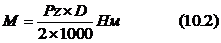 T1= 3 × 103 /95,2 = 31,5 Н×м