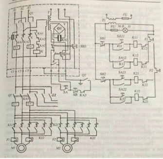 выключатель Q, контактор К, трансформатор TI (380/127); управления (трансформатор