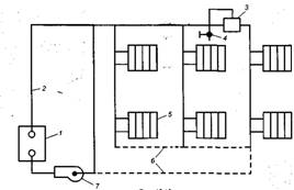 Рисунок 1 - Схема отопления с механической циркуляцией воды: 1 - котел;