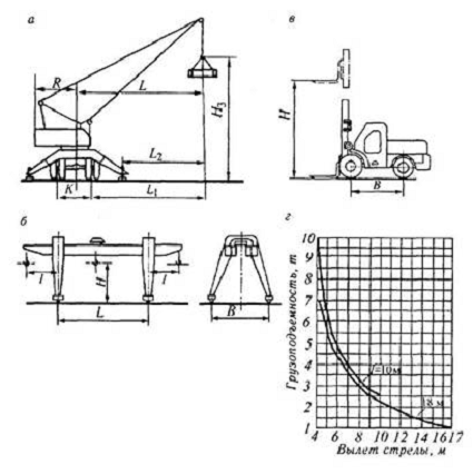 Рисунок 17 - Основные параметры погрузочно-разгрузочных машин: а -