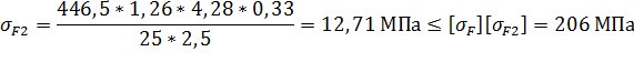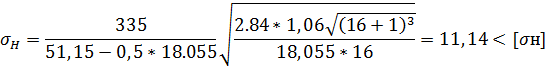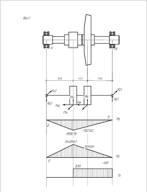 напряжениям изгиба. Расчеты показывают, что условие прочности выполнено.