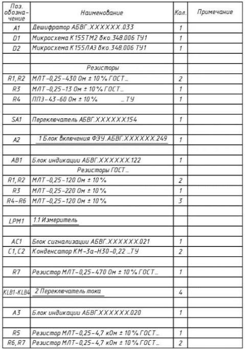технические данные, характеризующие схему в целом и отдельные её элементы. Эти