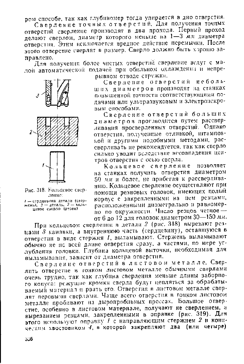 мм и более, не прибегая к рассверливанию. Кольцевое сверление осуществляют при