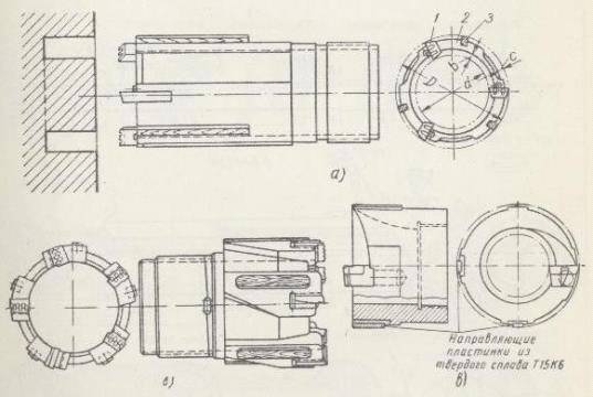 Кольцевое сверление осуществляют при помощи резцовых головок, имеющих