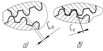 б) заклинивание зубьев при недостаточном боковом зазоре Сп