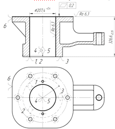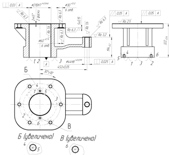 . Обеспечить перпендикулярность торца бобышки корпуса к торцу фланца αΔ=0,05мм (рис. 1.6). Невыполнение