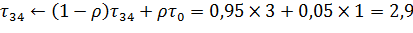 агента произойдет по ребру 1-4 в вершину 4. Рассчитаем локальное обновление