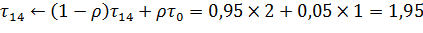 агента произойдет по ребру 1-4 в вершину 4. Рассчитаем локальное обновление