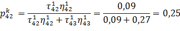 . Пусть жребий показал число 0.3, тогда переход произойдет в